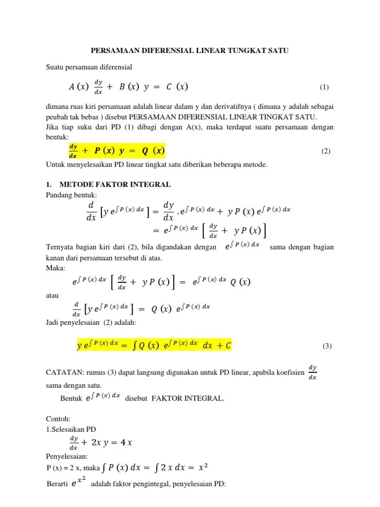 25+ Contoh Soal Persamaan Diferensial Linier. Berikut ini disajikan beberapa soal terkait penyelesaian pd linear orde satu. Soal diatas dibuat menjadi berbentuk persamaan linier orde pertama. Bab vii di kaji persamaan diferensial linier homogen orde. Selesaikan persamaan diferensial dibawah ini : Contoh soal persamaan diferensial linear orde pertama. Persamaan diferensial linier non homogen sumber : 2.9 persamaan diferensial linear orde satu resmawan@ung.ac.id (mathung). Carilah solusi umum dari persamaan diferensial di bawah ini ! Sebagai contoh, derivative dari fungsi. Persamaan diferensian biasa orde pertama.