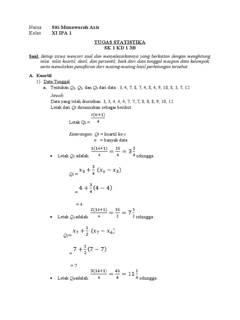 24+ Contoh Soal Desil Ke 6. Pada soal di atas, hanya diminta 3 desil saja. Desil dari data tunggal dan data kelompok. 9, 10, 11, 6, 8, 7, 7, 5, 4, 5. Nilai ujian matematika yang diperoleh 30 orang siswa kelas 1 sekolah menengan atas yaitu sebagai berikut: Dari data berikut 1, 2, 2, 2, 3, 3, 5, 6, 6, 7, . Kuartil , desil, persentil) data data berkelompok berkelompok 3.29.5 menganalisis ukuran. Perhatikan contoh soal berikut ini. 5, 4, 5, 6, 7, 8, 4, 5, 7, 9, 4, 4, 7, 8, 9, 6, 7, 7, . 5, 4, 5, 6, 7, 8, 4, 5, 7, 9, 4, 4, 7, 8, 9 . Desil sering dilambangkan dengan d.